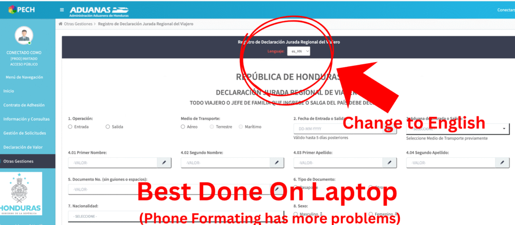 How to Complete the Honduras Immigration Pre-Check (PECHA) Form in English